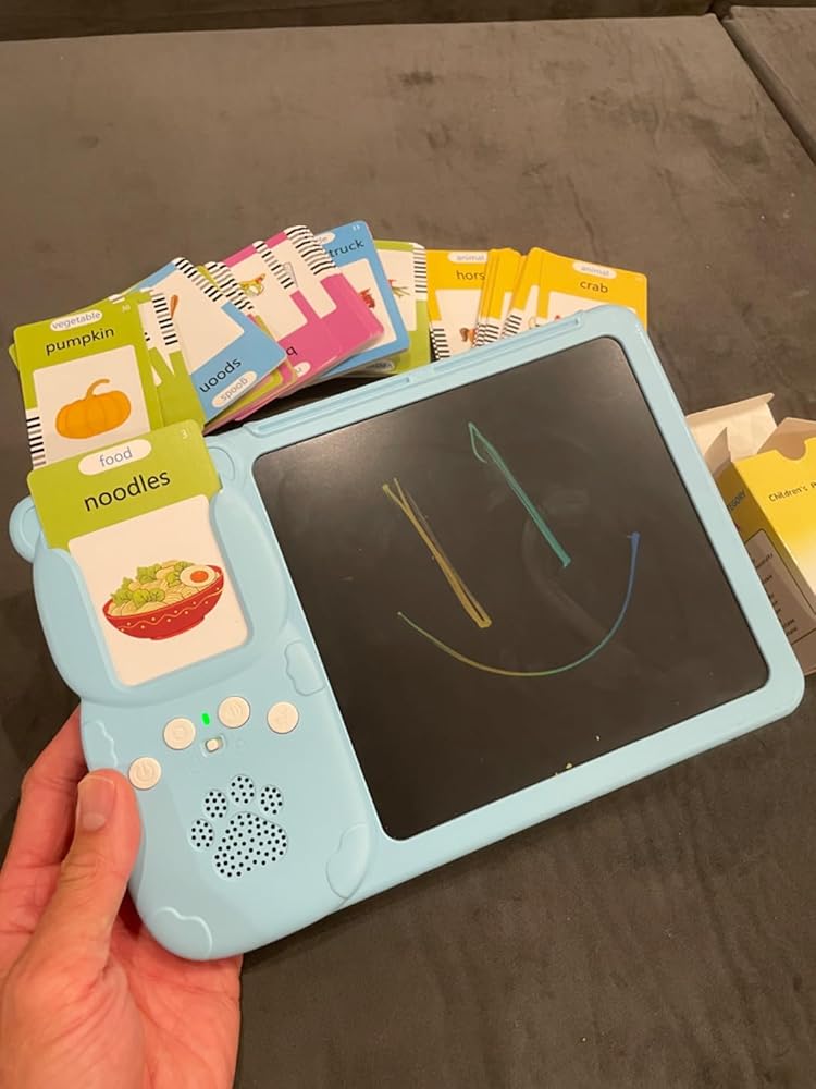 Talking flash cards + an interactive drawing tablet = a complete learning experience that combines listening, touch, and drawing in one product.